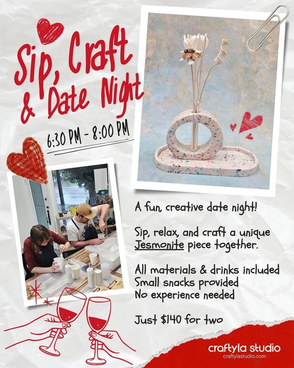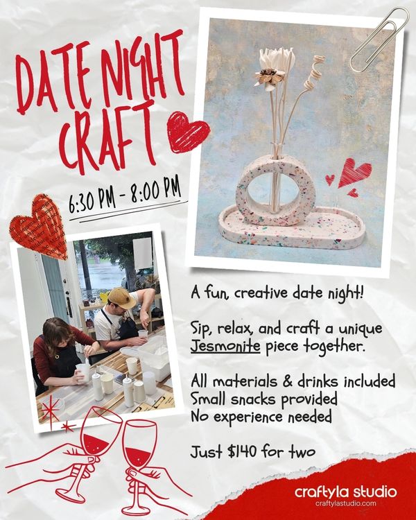 Cozy up with your partner and create your own Jesmonite masterpiece together – drinks, creativity, and memories included!